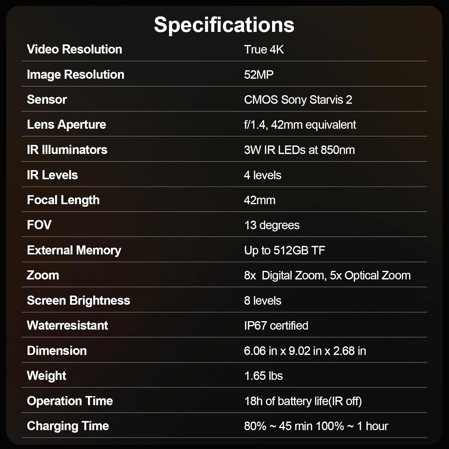 Includes 1x NTX1,1x 64GB SD card, 1x neck strap, 1x USB-C cable, 1x lens cover, and user manual—everything you need to explore the night. NTX1 helps you own every adventure after dark