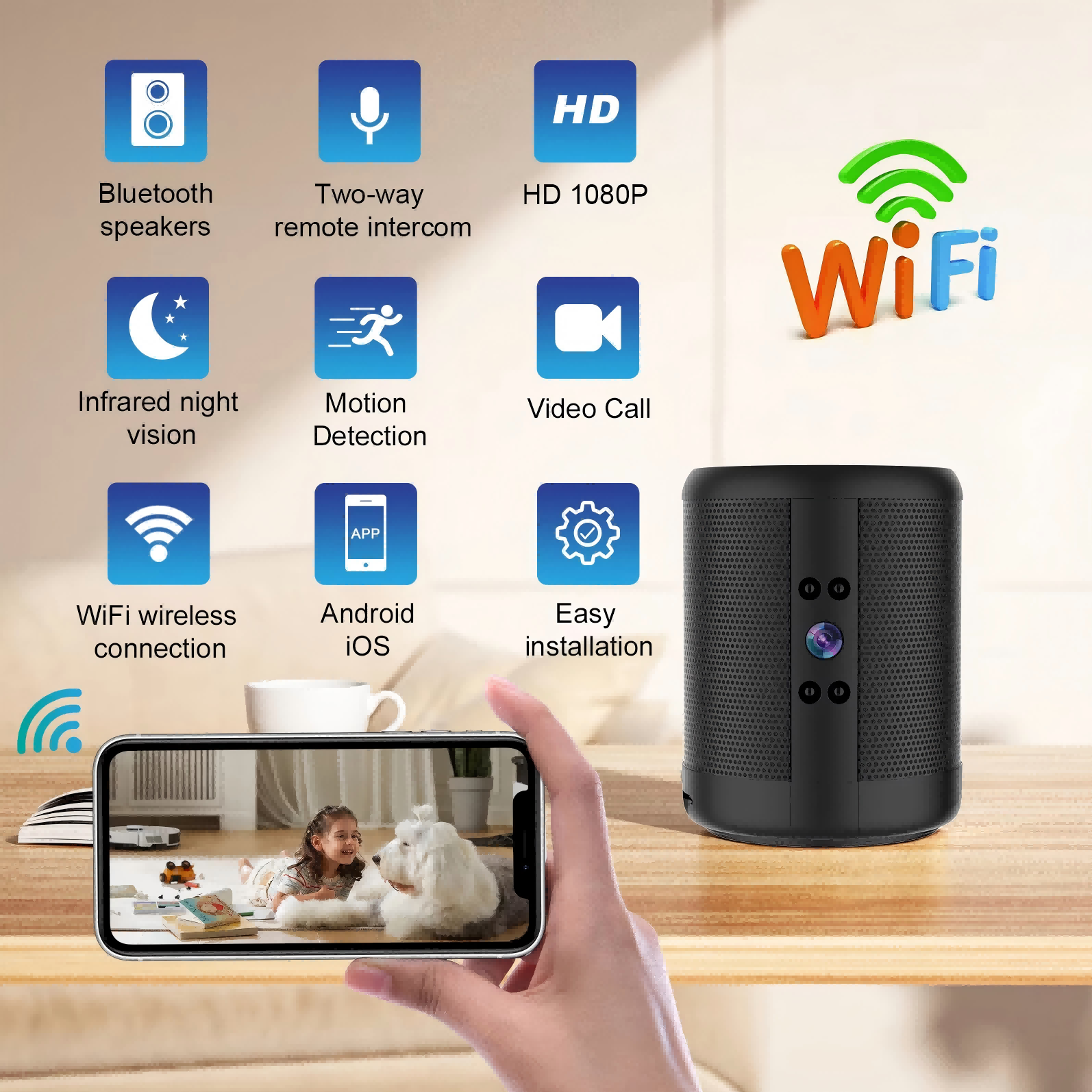 Telecamera Spia Altoparlante Bluetooth con Angolo di Visuale di 240°
