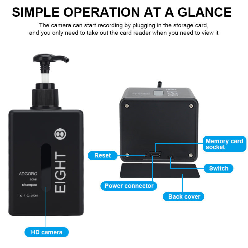 The Spy Camera Shampoo Bottle Spy Camera is the ideal accessory for your next bathroom hidden camera mission, it looks like an every day run of the mill WIFIShampoo Bottle Spy Camera 2K HD Hidden Spy Camera ,but features a hidden spy camera that can record video in total secrecy.